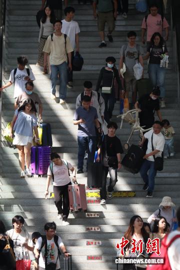 10月8日,江蘇南京,旅客們在火車站出行。當(dāng)日是國慶中秋假期最后一天,長三角鐵路迎來返程客流最高峰。中新社記者 泱波 攝