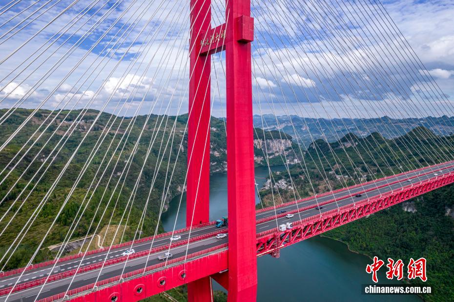 圖為10月8日,車輛行駛在貴州省貴(陽)黔(西)高速公路鴨池河大橋上。(無人機(jī)照片)史開心 攝