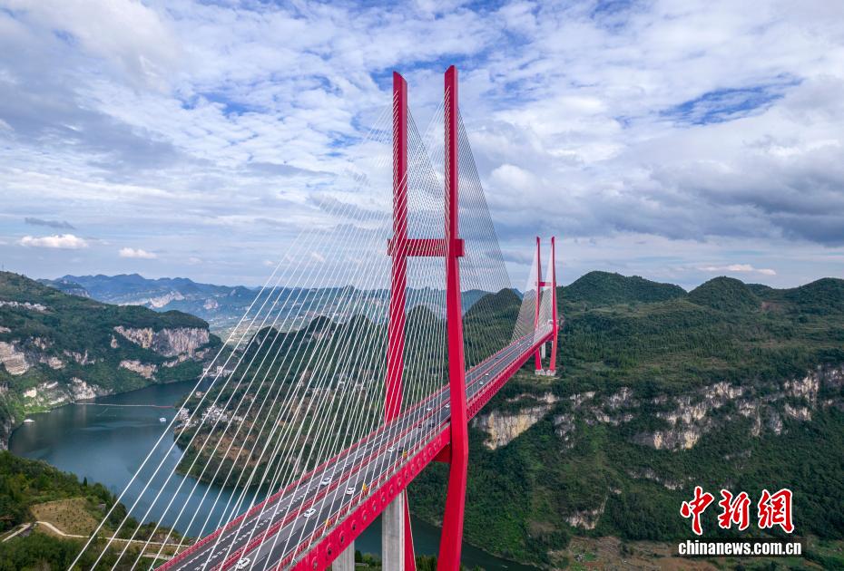 圖為10月8日,車(chē)輛行駛在貴州省貴(陽(yáng))黔(西)高速公路鴨池河大橋上。(無(wú)人機(jī)照片)史開(kāi)心 攝