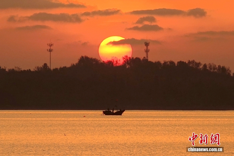 11月6日,山東青島,日出時(shí)分,西海岸唐島灣上空變幻的云霞與大海相映,油畫般絢美。