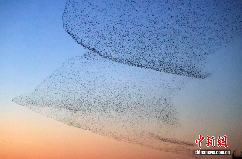 11月19日傍晚,黃河口濕地上空上演鳥浪景觀,讓人嘆為觀止。近日,在位于山東省東營市的山東黃河三角洲國家級自然保護區(qū)濕地上空,每天都會呈現(xiàn)“鳥浪”壯觀景象。數(shù)萬只花臉鴨騰空飛起,時而扶搖直上,時而俯沖直下,陣型瞬息萬變。