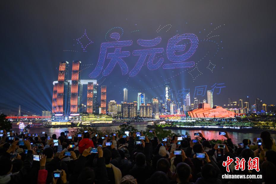 元旦假期 重慶無人機燈光秀點亮絢麗夜空