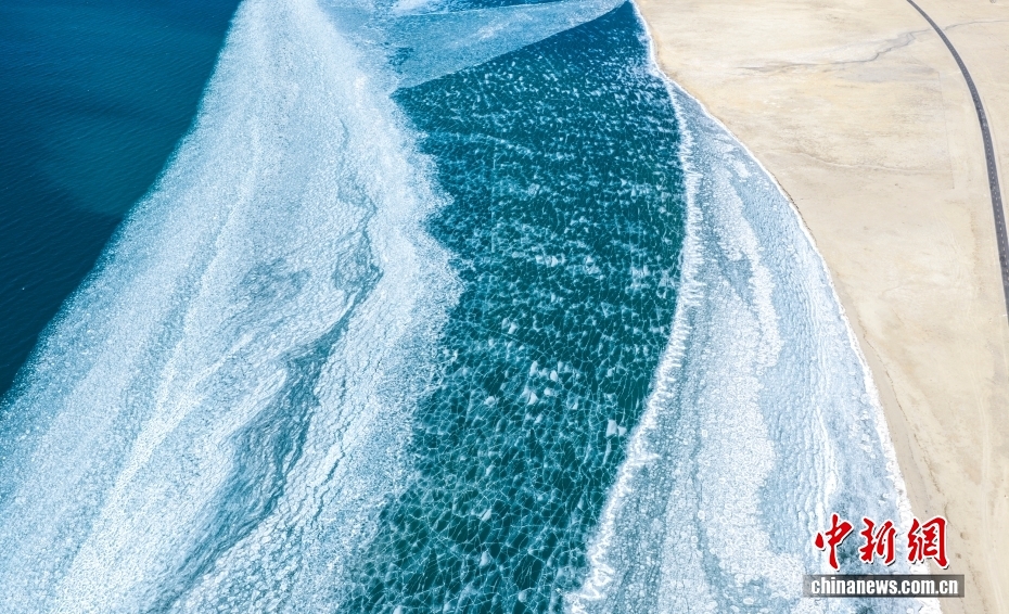 近日,西藏山南市浪卡子縣,普莫雍措部分水面結(jié)冰形成冰推景觀。圖/視覺(jué)中國(guó)