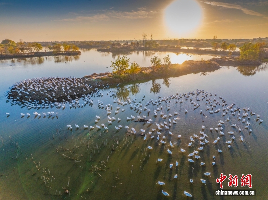 江蘇興化:候鳥飛抵濕地公園 淺灘覓食休憩(2)