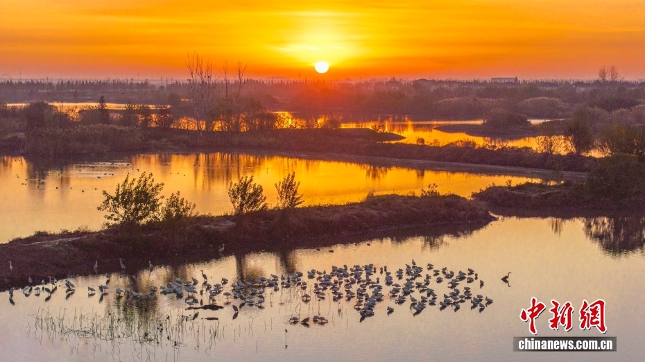 江蘇興化:候鳥(niǎo)飛抵濕地公園 淺灘覓食休憩(4)