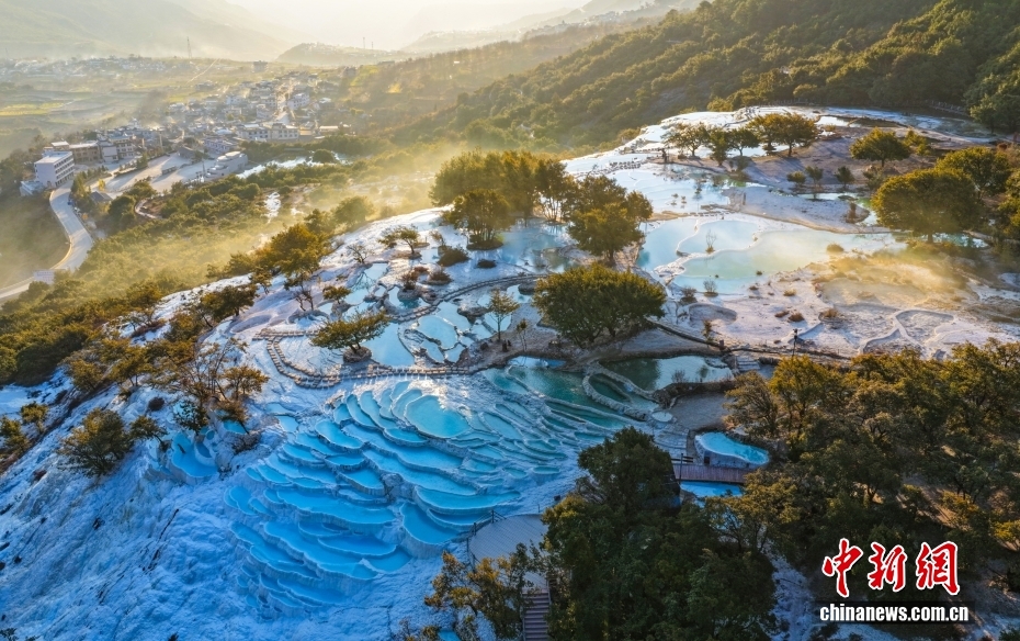 2026年1月11日,云南迪慶,香格里拉市,航拍冬日白水臺日出美景。圖/視覺中國
