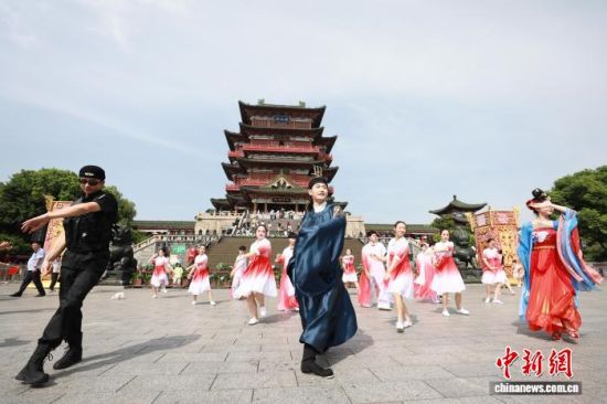 10月1日,江西南昌滕王閣景區(qū),NPC進行才藝展示。劉思偉 攝