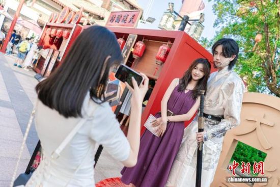 在南昌融創(chuàng)主題樂園,“少年將軍”NPC演員益彬身著白色長袍、手持佩劍,剛亮相就吸引了不少游客。“我的工作就是為游客提供情緒價值!币姹蛘f。