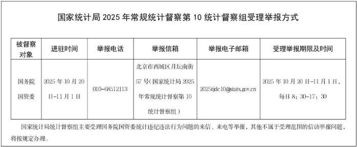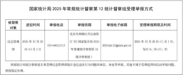 據(jù)國家統(tǒng)計(jì)局官網(wǎng)消息,近日,國家統(tǒng)計(jì)局組建12個(gè)督察組,于10月中旬起分別進(jìn)駐天津市、吉林省、福建省、江西省、山東省、甘肅省和工業(yè)和信息化部、民政部、生態(tài)環(huán)境部、水利部、應(yīng)急管理部、國務(wù)院國資委,開展2025年常規(guī)統(tǒng)計(jì)督察。