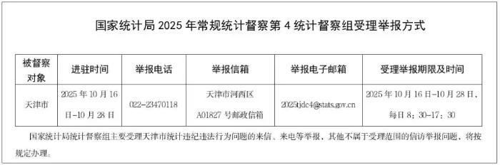 第4統(tǒng)計(jì)督察組進(jìn)駐天津市