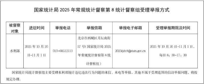 第8統(tǒng)計(jì)督察組進(jìn)駐水利部