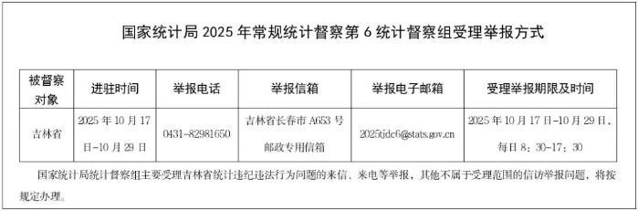 第6統(tǒng)計(jì)督察組進(jìn)駐吉林省