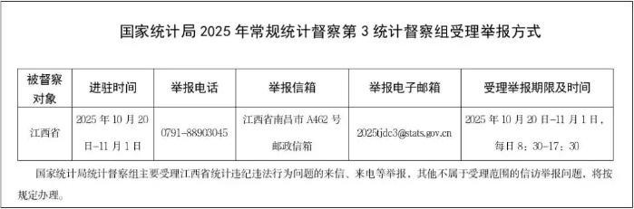 第3統(tǒng)計(jì)督察組進(jìn)駐江西省