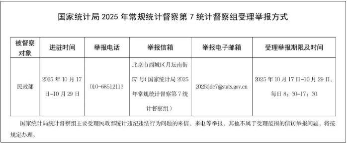 第7統(tǒng)計(jì)督察組進(jìn)駐民政部