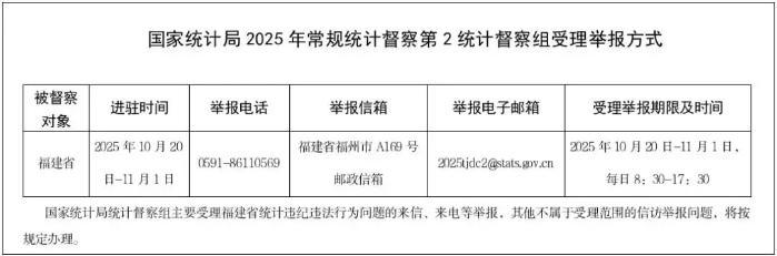 第2統(tǒng)計(jì)督察組進(jìn)駐福建省