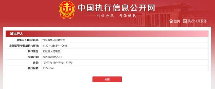 近日,中國(guó)執(zhí)行信息公開網(wǎng)披露信息顯示,山東知名白酒企業(yè)古貝春集團(tuán)有限公司(下稱“古貝春集團(tuán)”)再添強(qiáng)制執(zhí)行記錄,執(zhí)行金額1322.17萬(wàn)元,執(zhí)行法院為武城縣人民法院,案號(hào)為(2025)魯1428執(zhí)1826號(hào)。