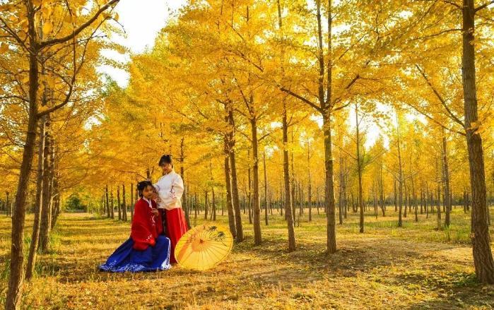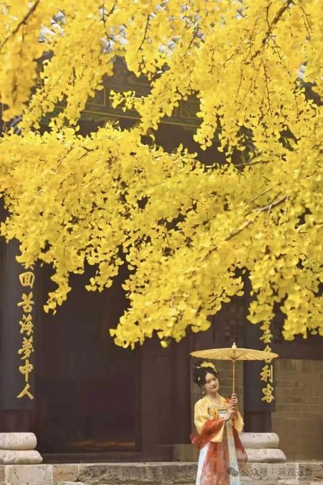 站在銀杏樹前,感受寒來暑往,季節(jié)更替,時間概念淡化,我們可以和前人欣賞著同樣的美景。