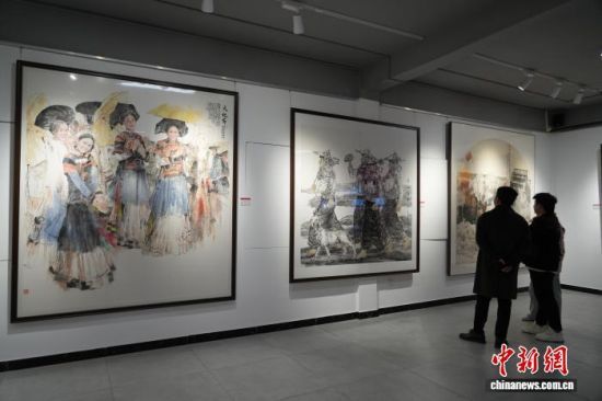 11月12日,第四屆“香凝如故”全國(guó)美展山東巡展暨民革中央畫院山東展覽中心落成活動(dòng)在山東濟(jì)南開幕,60余件中國(guó)畫、油畫作品展出,吸引民眾駐足欣賞畫作。王采怡 攝