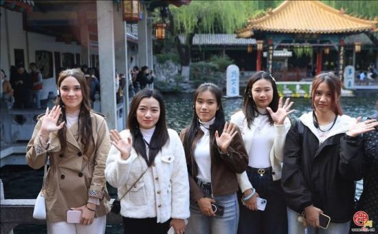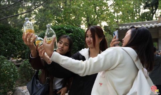 在漱玉泉邊,老撾留學生佩麗娜學著本地人的樣子,將一枚硬幣輕輕投入泉中!奥犝f往水里扔硬幣會有福氣,我許愿能順利畢業(yè),身體健康!彼χf。此行中,留學生們還了解到宋代女詞人李清照與濟南的深厚淵源,在采訪時,她吟誦出了剛學會的“知否知否,應是綠肥紅瘦”的名句,為泉水之旅增添了一抹婉約的文化韻味。