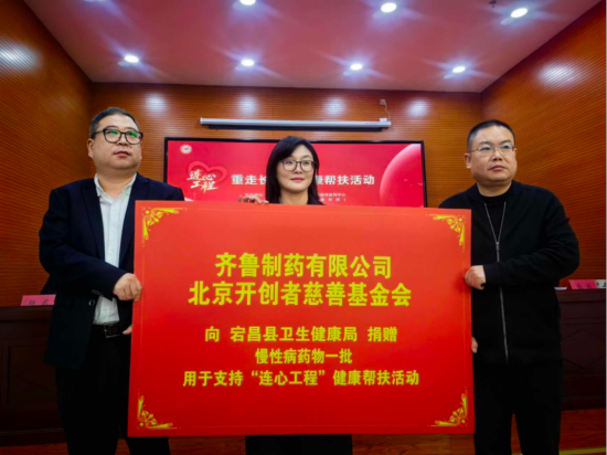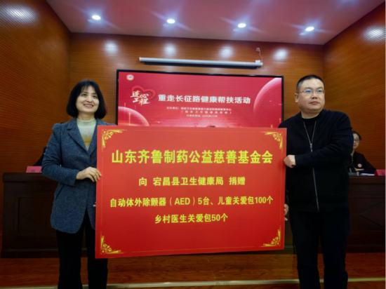 儀式上,山東齊魯制藥公益慈善基金會(huì)、齊魯制藥有限公司等愛心企業(yè)分別向宕昌縣衛(wèi)生健康局捐贈(zèng)體外除顫器(AED)、兒童關(guān)愛包、鄉(xiāng)村醫(yī)生關(guān)愛包以及慢性病藥物等物資,用于支持“連心工程”健康幫扶活動(dòng),表達(dá)對(duì)基層健康守護(hù)者的敬意與關(guān)懷。