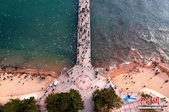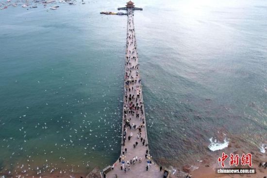 12月2日,山東青島,人與海鷗共赴的 “年度之約”。成群的銀鷗舒展雙翼,在碧海藍(lán)天間翩躚盤旋,時而低空掠過海面,時而停落肩頭覓食,與前來打卡的市民游客近距離互動,讓 “人與海鷗和諧共處” 成為這座濱海城市的初冬名片。(無人機(jī)照片)中新社發(fā) 王鑫 攝