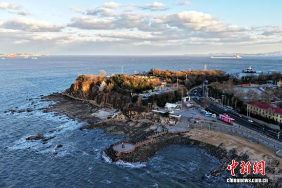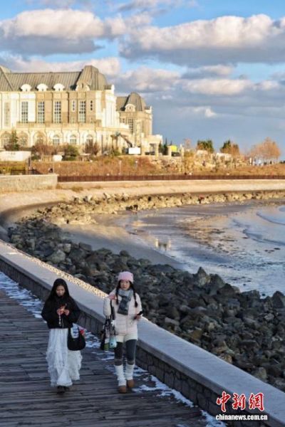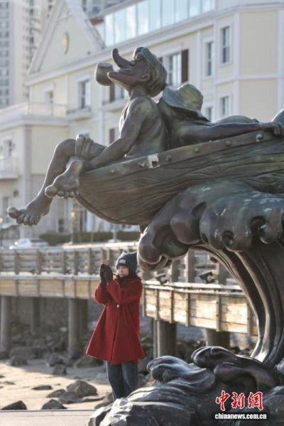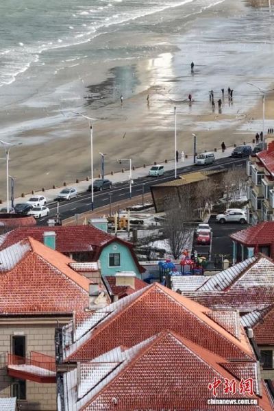 12月3日,山東煙臺(tái)海濱薄雪輕覆,紅瓦建筑與碧海相映,漁船、礁石、雕塑點(diǎn)綴其間,勾勒出一幅靜謐和諧的北方海濱冬日畫卷。(無(wú)人機(jī)照片)王鑫 攝