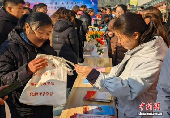 中新網(wǎng)濟(jì)南12月4日電(王采怡)12月4日,菏澤市單縣“十月物資交流大會(huì)”熱鬧非凡。人群中,一個(gè)特別的攤位引人注目——單縣人民法院謝集法庭法官團(tuán)隊(duì)連續(xù)第三年在這里“擺攤”普法,將憲法精神融入市井煙火。