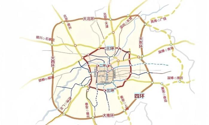 “三環(huán)”為濟南繞城高速G2001,即繞城高速東線、繞城高速南線、京臺高速、濟聊高速、青銀高速等5條高速公路圍成的環(huán)路。