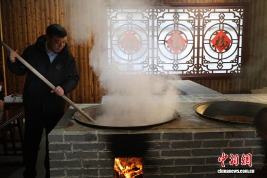 12月21日,正值冬至,山東濟南東阿鎮(zhèn),2025中國福文化節(jié)暨第76屆神農(nóng)賜福大典舉辦,民眾體驗煉膠工藝。王采怡 攝