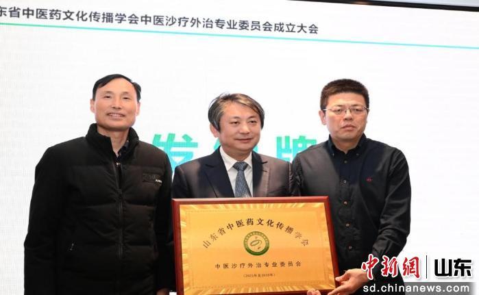 濟(jì)南市衛(wèi)生健康委產(chǎn)業(yè)處處長(zhǎng)劉世武與山東科技出版社副總編輯韓琳共同為“山東省中醫(yī)藥文化傳播學(xué)會(huì)中醫(yī)沙療外治專業(yè)委員會(huì)”揭牌。