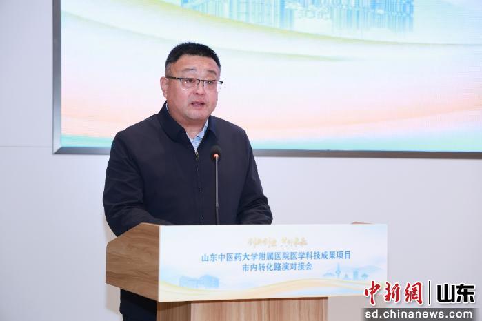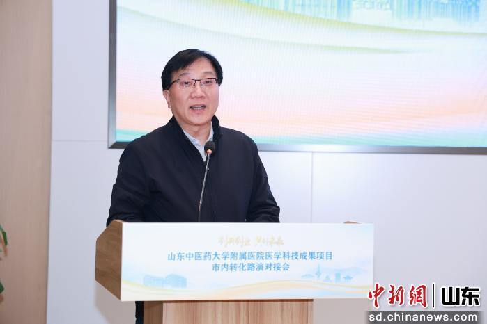 濟(jì)南市科技局黨組成員、副局長彭文博在致辭中表示,科技創(chuàng)新是引領(lǐng)發(fā)展的核心動力,科技成果轉(zhuǎn)化則是打通“科研-臨床-產(chǎn)業(yè)”閉環(huán)的關(guān)鍵紐帶。山東中醫(yī)藥大學(xué)附屬醫(yī)院作為該省中醫(yī)藥領(lǐng)域的龍頭標(biāo)桿,在中醫(yī)傳承創(chuàng)新、中西醫(yī)結(jié)合研究、特色制劑研發(fā)等方面積淀深厚、成果豐碩,其發(fā)展方向與濟(jì)南市生物醫(yī)藥及大健康產(chǎn)業(yè)布局高度契合。濟(jì)南市科技局將持續(xù)深耕“創(chuàng)新創(chuàng)業(yè)·共創(chuàng)未來”品牌建設(shè),搭建常態(tài)化供需對接平臺,推動“醫(yī)產(chǎn)學(xué)研用”深度融合,助力更多中醫(yī)藥創(chuàng)新成果從“書架”走向“貨架”,為健康山東建設(shè)注入持久動力。