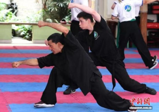 2024年9月10日,路易斯在巴西教學(xué)生們練習(xí)螳螂拳。(受訪者供圖)