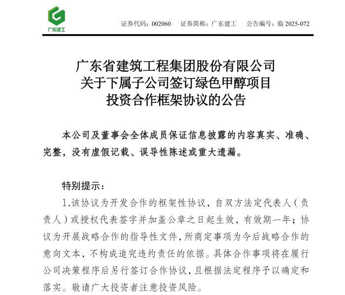 近日,廣東省建筑工程集團(tuán)股份有限公司(簡(jiǎn)稱(chēng)“廣東建工”)發(fā)布公告,其全資子公司廣東水電二局集團(tuán)有限公司的全資子公司廣東粵水電能源投資集團(tuán)有限公司(簡(jiǎn)稱(chēng)“粵水電能源集團(tuán)”)與山東省臨沂市郯城縣政府簽訂《綠色甲醇項(xiàng)目投資合作框架協(xié)議》,擬在臨沂市郯城縣投資建設(shè)綠色甲醇、綠色LNG及集中式風(fēng)電項(xiàng)目。