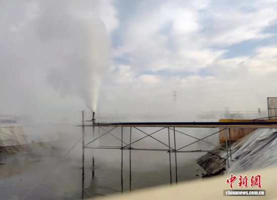 1月9日,在山東東營(yíng)市東營(yíng)港經(jīng)濟(jì)開(kāi)發(fā)區(qū),由山東省地礦局鉆成的“東高熱1”地?zé)峋,正在進(jìn)行放噴展示。沙見(jiàn)龍 攝