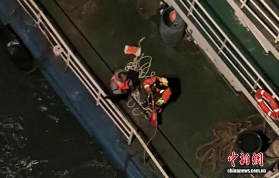 當日1時28分,兩架救助直升機飛往事發(fā)海域。現(xiàn)場風力10級至11級,浪高3米至5米。飛行員在暗夜環(huán)境中依靠儀表、夜視儀和搜索燈,操縱直升機懸停于遇險船舶上空,絞車手精準操縱機載絞車設備,救生員克服強風擾動等困難,分批次展開救援。