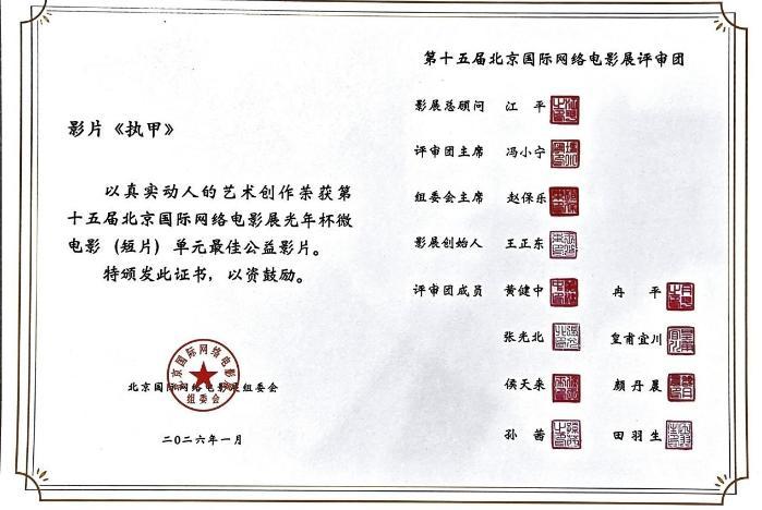 1月9日,第15屆北京國際網(wǎng)絡(luò)電影展隆重舉行,山東大學(xué)附屬兒童醫(yī)院策劃拍攝的《執(zhí)甲》榮獲第十五屆北京國際網(wǎng)絡(luò)微電影展微電影(短片)單元最佳公益影片,醫(yī)院副院長郭磊及影片策劃人員共同參加頒獎(jiǎng)典禮。