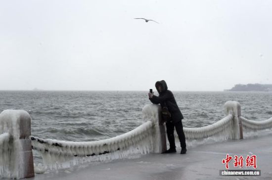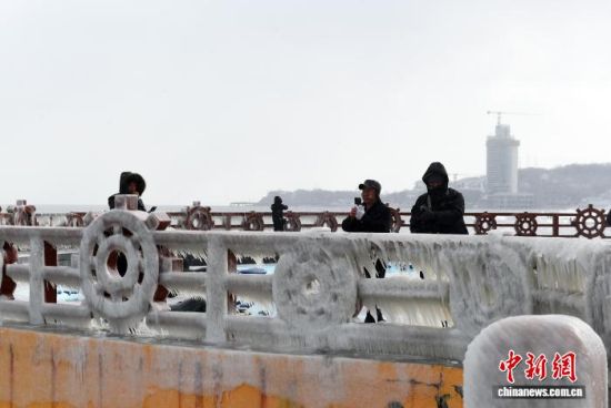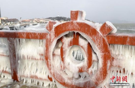 山東煙臺(tái)海濱現(xiàn)冰凌景觀