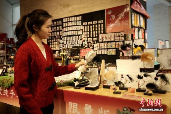 1月20日,山東美術(shù)館文創(chuàng)專區(qū)展陳不同造型的“馬彪彪”。中新社記者 趙曉 攝