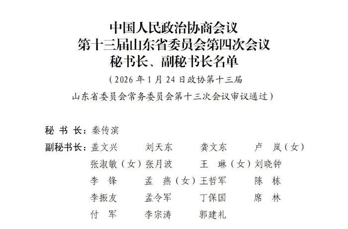 1月24日,中國(guó)人民政治協(xié)商會(huì)議第十三屆山東省委員會(huì)常務(wù)委員會(huì)第十三次會(huì)議決定: