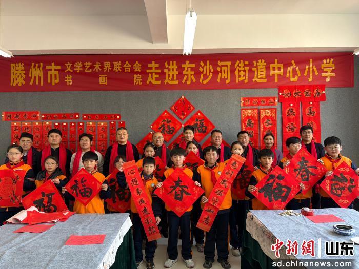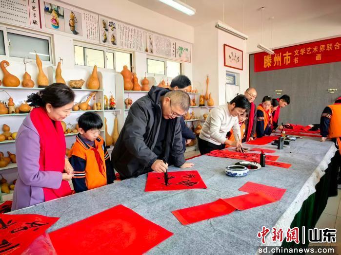 中新網(wǎng)山東新聞1月27日電 為深入貫徹落實(shí)國(guó)家文化惠民政策,扎實(shí)推進(jìn)中華優(yōu)秀傳統(tǒng)文化進(jìn)校園、進(jìn)課堂、進(jìn)心靈,近日,滕州市文學(xué)藝術(shù)界聯(lián)合會(huì)、滕州書(shū)畫(huà)院聯(lián)合組織多名書(shū)畫(huà)名家,走進(jìn)東沙河街道中心小學(xué),開(kāi)展“新春送萬(wàn)福進(jìn)校園”主題活動(dòng),為全校師生送上濃濃的新春祝福與文化滋養(yǎng)。