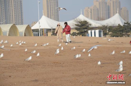 1月27日,位于山東省青島西海岸新區(qū)的靈山灣畔海鷗翔集,與駐足觀賞、欣然投喂的民眾親密互動(dòng),在海天之間繪就了一幅靈動(dòng)和諧的美好畫(huà)卷。海鷗是山東青島的一張亮麗生態(tài)名片,目前,隨處可見(jiàn)的“人鷗相親”景象,已成為當(dāng)?shù)厣鷳B(tài)環(huán)境持續(xù)向好的生動(dòng)注腳。圖為民眾向海鷗投喂食物。張孝鵬 攝