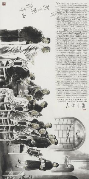 其六,作為一項國家藝術基金資助項目,樹立了高質量項目標桿。專家認為,該創(chuàng)作在尺寸規(guī)格與組畫模式方面均屬少見,創(chuàng)作過程堪比學術研究。藝術家耗費數(shù)年,對浩繁的史料、人物傳記、舊文獻影像進行了嚴謹細致的爬梳與考證,確保每一處場景、服飾、器物皆有歷史依據(jù)。豐富翔實的文獻支撐與高度完整、高超的藝術呈現(xiàn),使其超越了普通個人創(chuàng)作項目結項要求,成為體現(xiàn)國家藝術基金扶持初衷的示范性成果。這套完整的創(chuàng)作檔案,也為研究當代主題性美術的生成機制、方法演進提供了極具價值的個案。