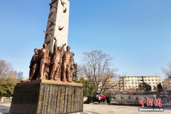 濰縣西方僑民集中營(yíng)舊址博物館和平廣場(chǎng)雕塑紀(jì)念碑。沈廣安 攝
