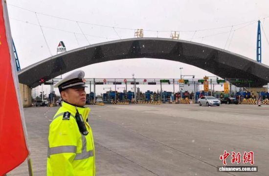 圖為民警在山東煙臺(tái)福山收費(fèi)站執(zhí)勤。方毅 攝
