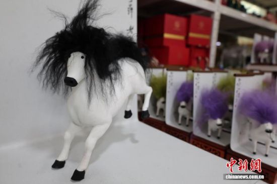 圖為工作人員為“馬彪彪”黏貼毛發(fā)。趙曉 攝