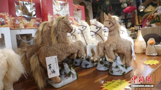 手藝人利用蒲草和蘆葦制作的“草編馬”。王世發(fā) 攝