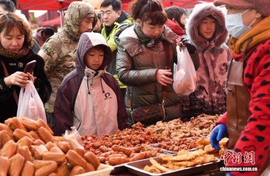 2月10日,山東煙臺(tái),福山大集上的炸貨吸引民眾選購(gòu)。中新社記者 王嬌妮 攝