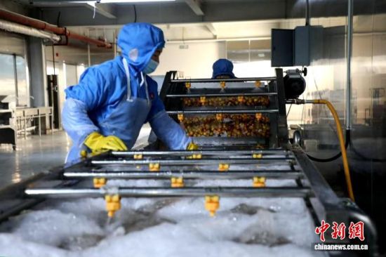 尚億食品生產車間內,工人正在對新鮮冬棗進行篩選清洗。沾化區(qū)委宣傳部供圖