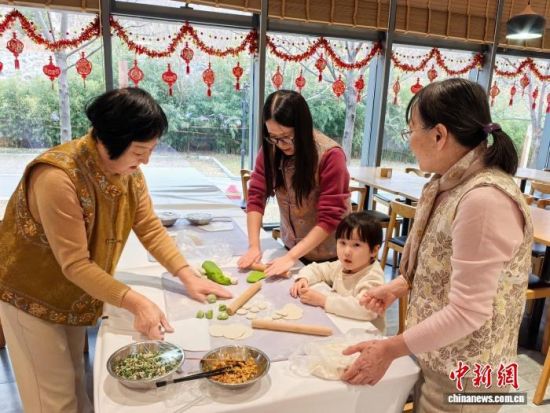 在泰山九女峰鄉(xiāng)村旅游度假區(qū),游客包餃子過新年。泰安市委宣傳部供圖