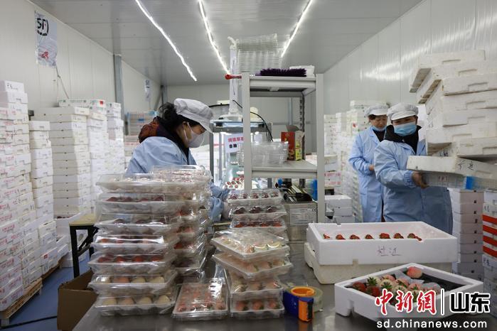 中新網(wǎng)山東新聞2月22日電(王嬌妮 欒欽程 張曉瑜)年味漫鄉(xiāng)村,暖棚春意濃。春節(jié)假期,山東煙臺(tái)棲霞市官道鎮(zhèn)的溫室大棚里,一顆顆色澤鮮艷、個(gè)頭飽滿(mǎn)的草莓綴滿(mǎn)枝頭,正被工人熟練地分揀打包,即將通過(guò)冷鏈、搭乘航班,出口至新加坡、泰國(guó)等國(guó)家和地區(qū),成為一份來(lái)自中國(guó)鄉(xiāng)村的“新春禮物”。
